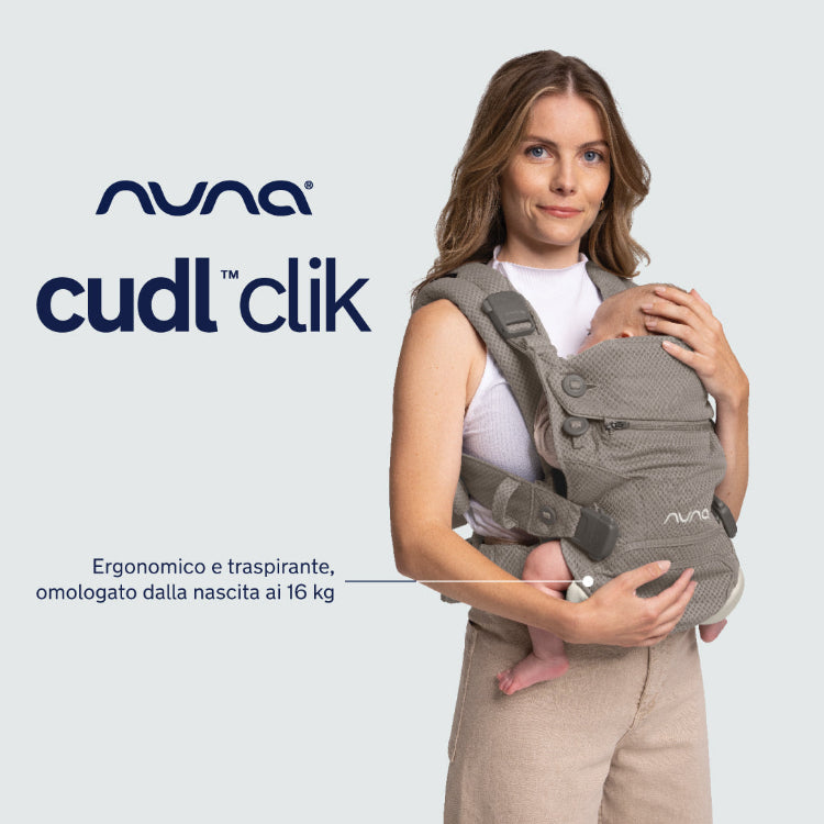 ScopriScopri il Nuna Cudl Clik, il marsupio che trasforma ogni uscita in un tenero momento di connessione. Con quattro posizioni ergonomiche, fibbie magnetiche intuitive e tessuti traspiranti, offre comfort, sicurezza e praticità, lasciandoti mani libere per coccolare il tuo bimbo.