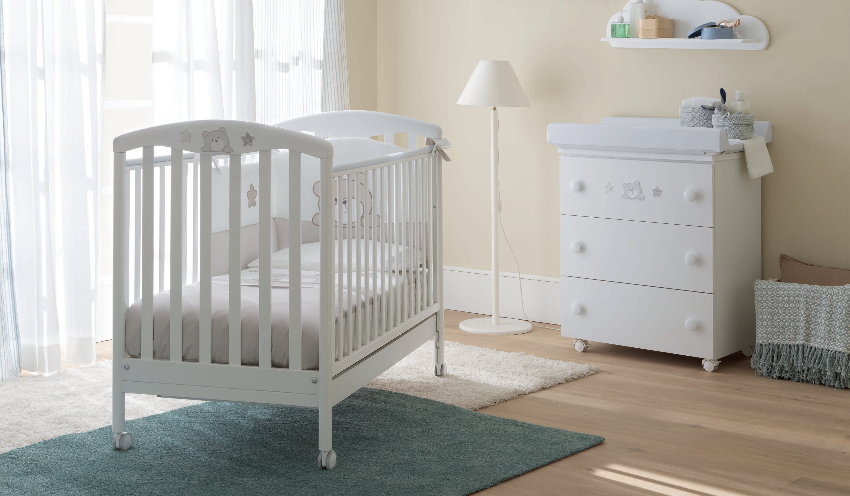Realizzato in legno di faggio, il set Teo Pali unisce lettino e bagnetto fasciatoio, garantendo comfort, sicurezza e praticità per una cameretta perfetta per il tuo piccolo.